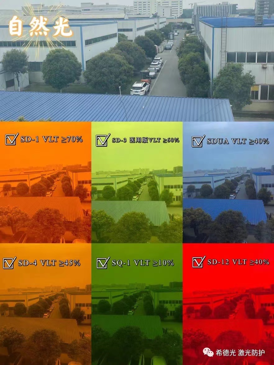 通過(guò)左往右的上下對(duì)比圖,我們可以感受到: SD-4比SD-1的VLT更低就表現(xiàn)在整體視覺(jué)亮度更暗,當(dāng)陽(yáng)光更強(qiáng)的時(shí)候?qū)Ρ葧?huì)更明顯——SD-1可以看到的光亮用SD-4就會(huì)減弱很多;而SD-3的醫(yī)用版明顯比用于IPL光子美容的SQ-1有更高的清晰度和更亮的視野;但是第三組圖片我們可以看到,SD-12由于鏡片顏色太重,盡管和SDUA有一樣的VLT值(≥40%),它的視覺(jué)感受明顯不如SDUA,同時(shí)如果對(duì)比SD-1(VLT≥70%)和SD-3醫(yī)用版(VLT≥60%)也可以看出,雖然SD-3醫(yī)用版VLT更低,但是因?yàn)槲盏牟ㄩL(zhǎng)不同并且鏡片呈現(xiàn)淺綠色,人眼更加適應(yīng),導(dǎo)致視覺(jué)感受會(huì)更好。